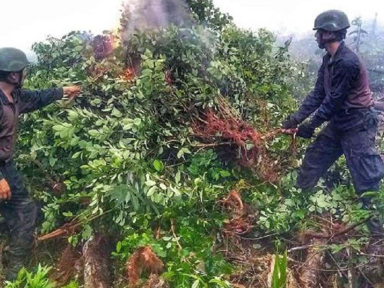 Mientras tanto, el 6 de marzo del 2021, soldados incineraron 10.000 plantas de coca en Santa Rosa. Además, localizaron una infraestructura para implementar un laboratorio para producir alcaloides.