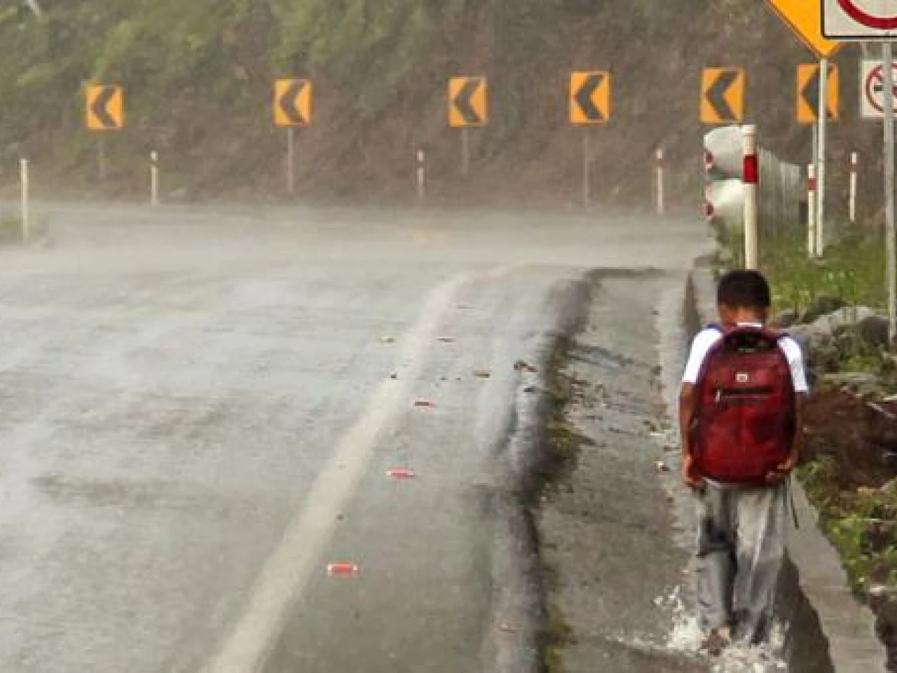 El niño, de 7 años, empleó ese mismo tiempo en la mañana para ir a clases. Esas caminatas son diarias, por un estrecho sendero de árboles y vegetación, y por la vía Macas-Puyo, que está en el trayecto.