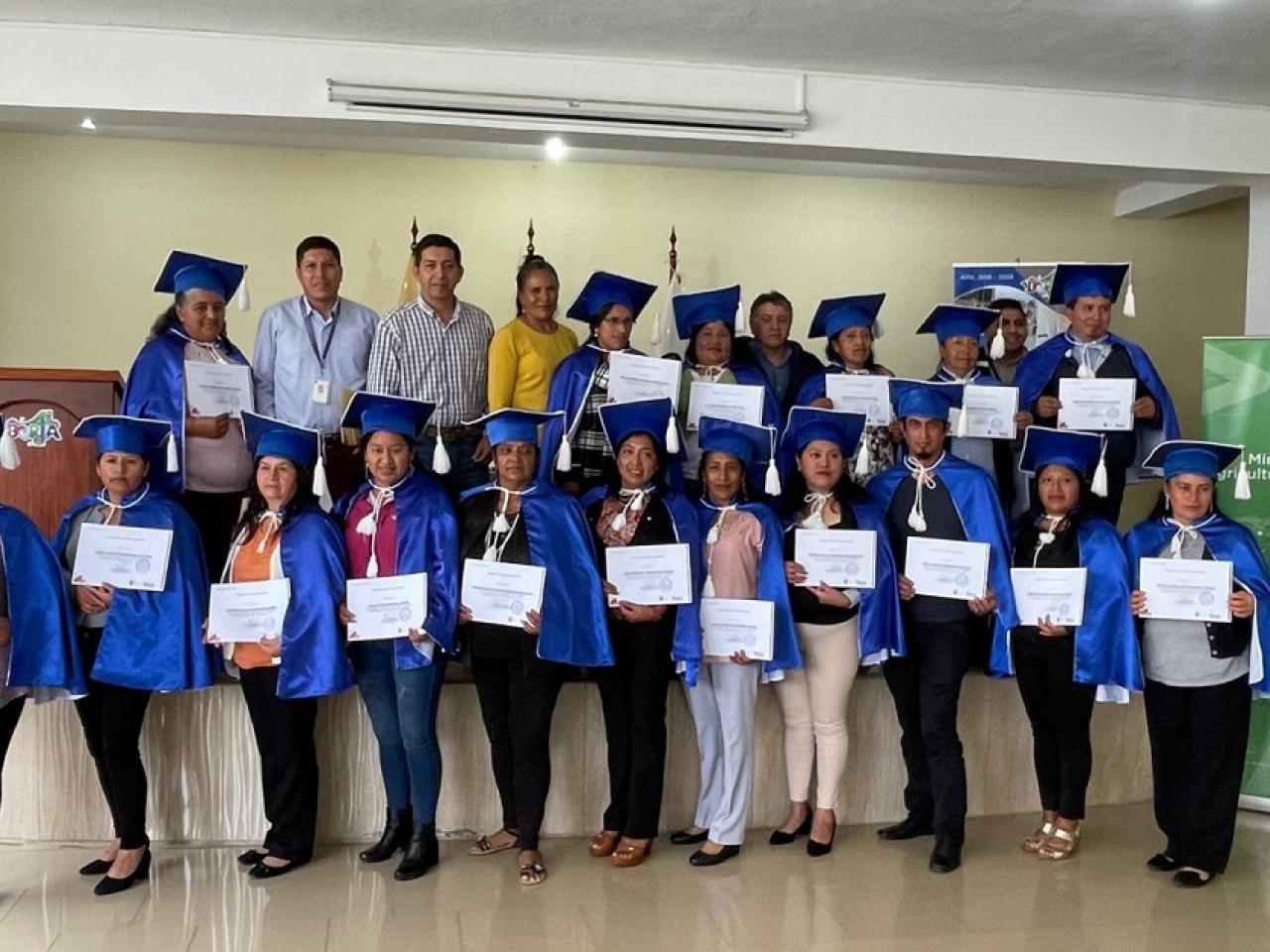 El grupo de productores recibió los certificados que les acredita haberse capacitado en 10 módulos. Entre los cuales constan la planificación predial, manejo y conservación de suelo y agua, bioinsumos, forestería, crianza de especies menores, fortalecimiento organizacional, comercialización y soberanía alimentaria.