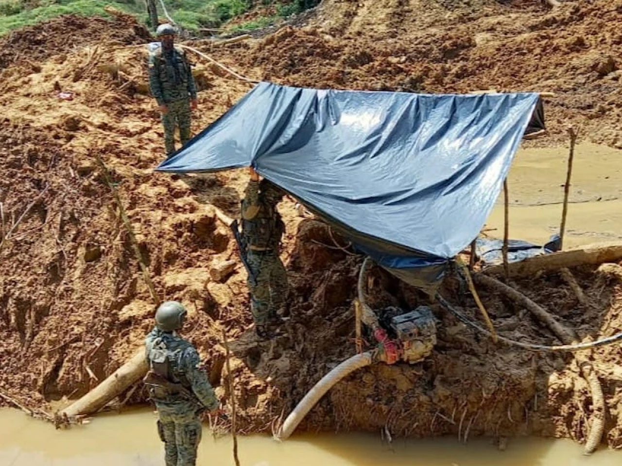 Las Fuerzas Armadas y la Agencia de Regulación y Control de Energía (ARC) localizaron ayer, 6 de julio, dos campamentos de minería ilegal en Sucumbíos. Confiscaron maquinaria y motores en los sectores Santa Rosa y La Libertad, cantón Cascales.
