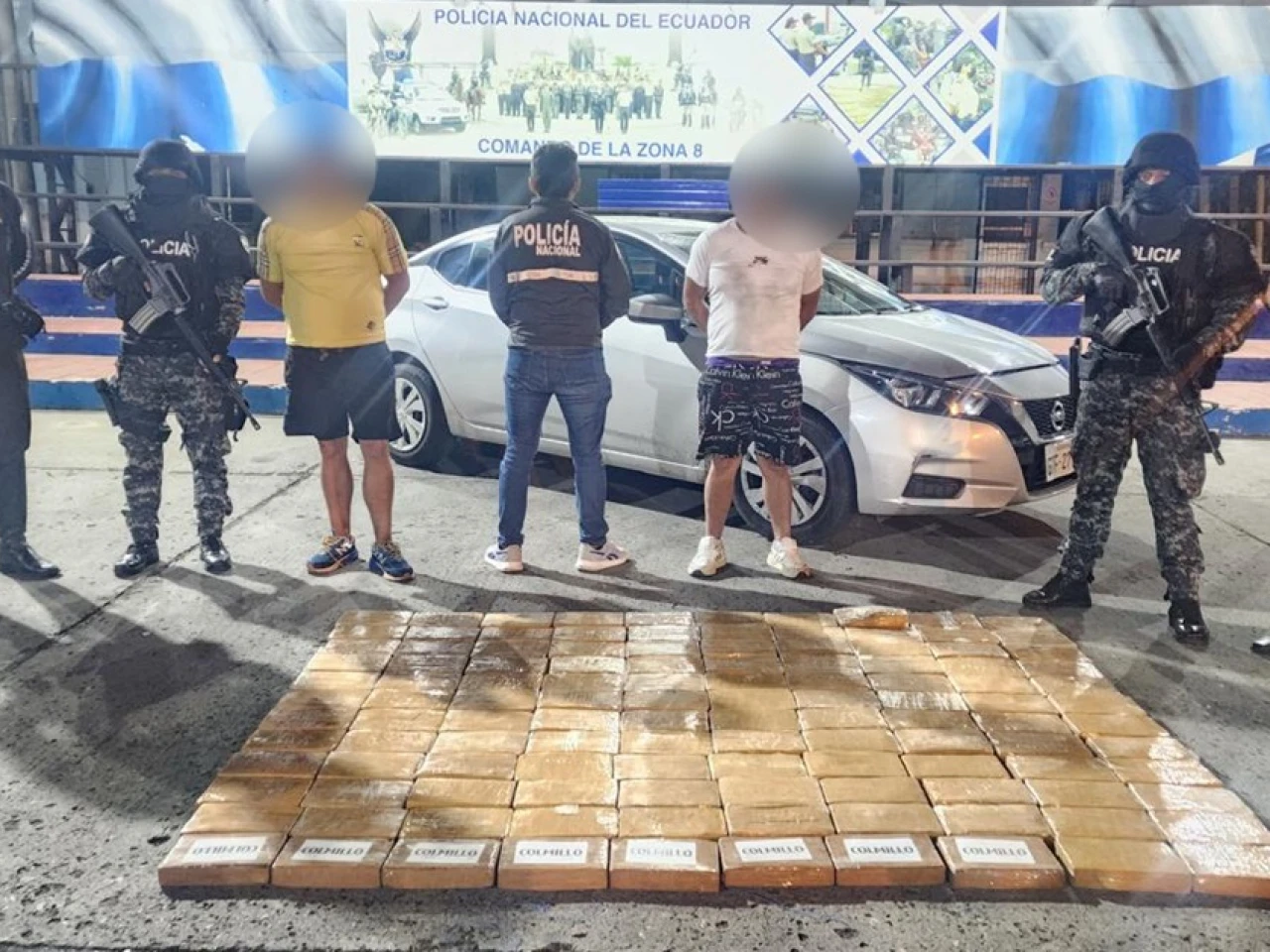 Los dos hombres fueron capturados el sábado en la porturaria ciudad de Guayaquil, cuando se movilizaban en un vehículo cargado con 120 bloques de cocaína envueltos en cinta de embalaje, de un aproximadamente un kilo de peso cada uno.