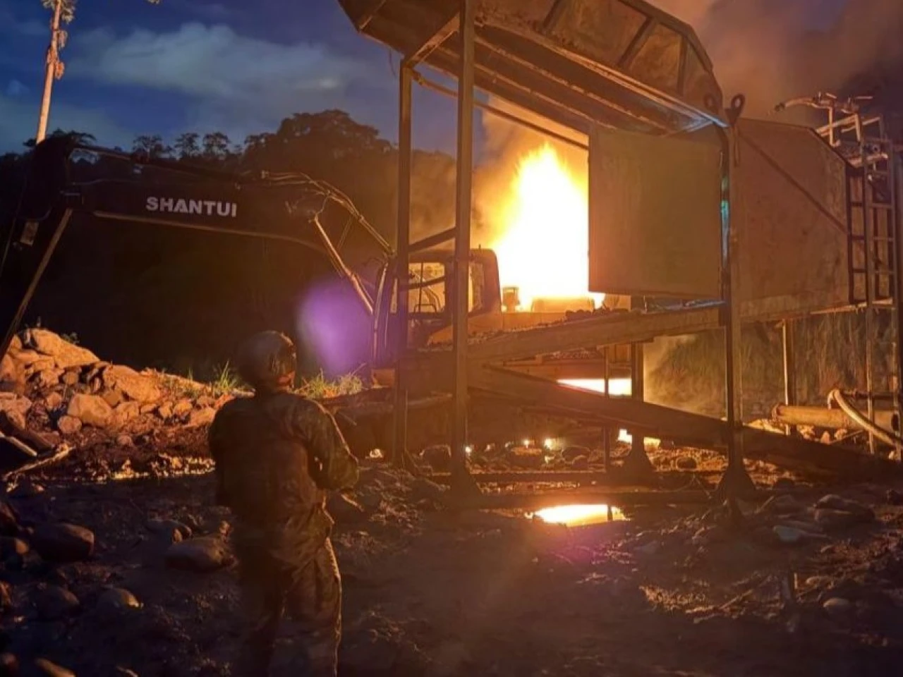Los resultados de los operativos reflejan golpes directos a las estructuras criminales: 55 máquinas destruidas, 75 bocaminas cerradas, 27 dragas inhabilitadas, 266 toneladas de material mineralizado incautadas y más de 3.400 galones de diésel decomisados. Además, se destruyeron bombas de agua y generadores que alimentaban la operación ilícita.