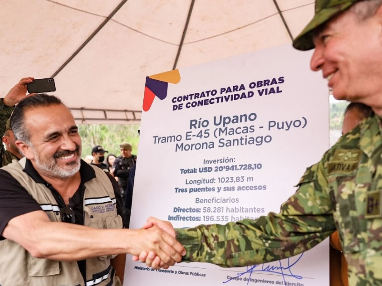 El 23 de diciembre, el ministerio de Transporte y Obras Públicas (MTOP) suscribió un contrato con el Cuerpo de Ingenieros del Ejército (CEE) para la construcción de 3 puentes sobre el río Upano. La inversión será de 20’941.728,10. El documento fue protocolizado por el ministro Darío Herrera y Freddy Játiva, comandante del CEE, entidad contratista.