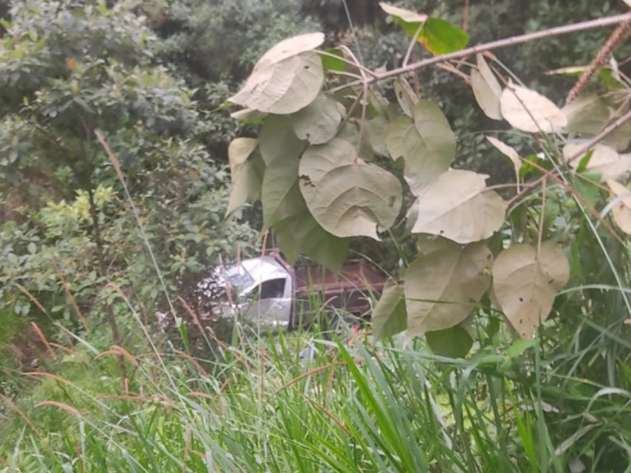 Efectivos de PPNN señalaron que se trató de un siniestro de tránsito por pérdida de pista de un vehículo tipo camioneta, mismo que se precipitó a un abismo de aproximadamente 50 metros de profundidad.
