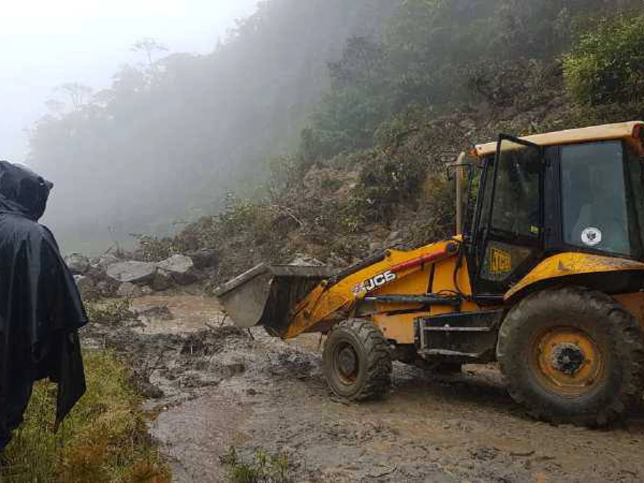 El desprendimiento de parte de la montaña provocado por la fuerte temporada invernal, mantiene interrumpida la vía que conecta a Tulcán con Lago Agrio.