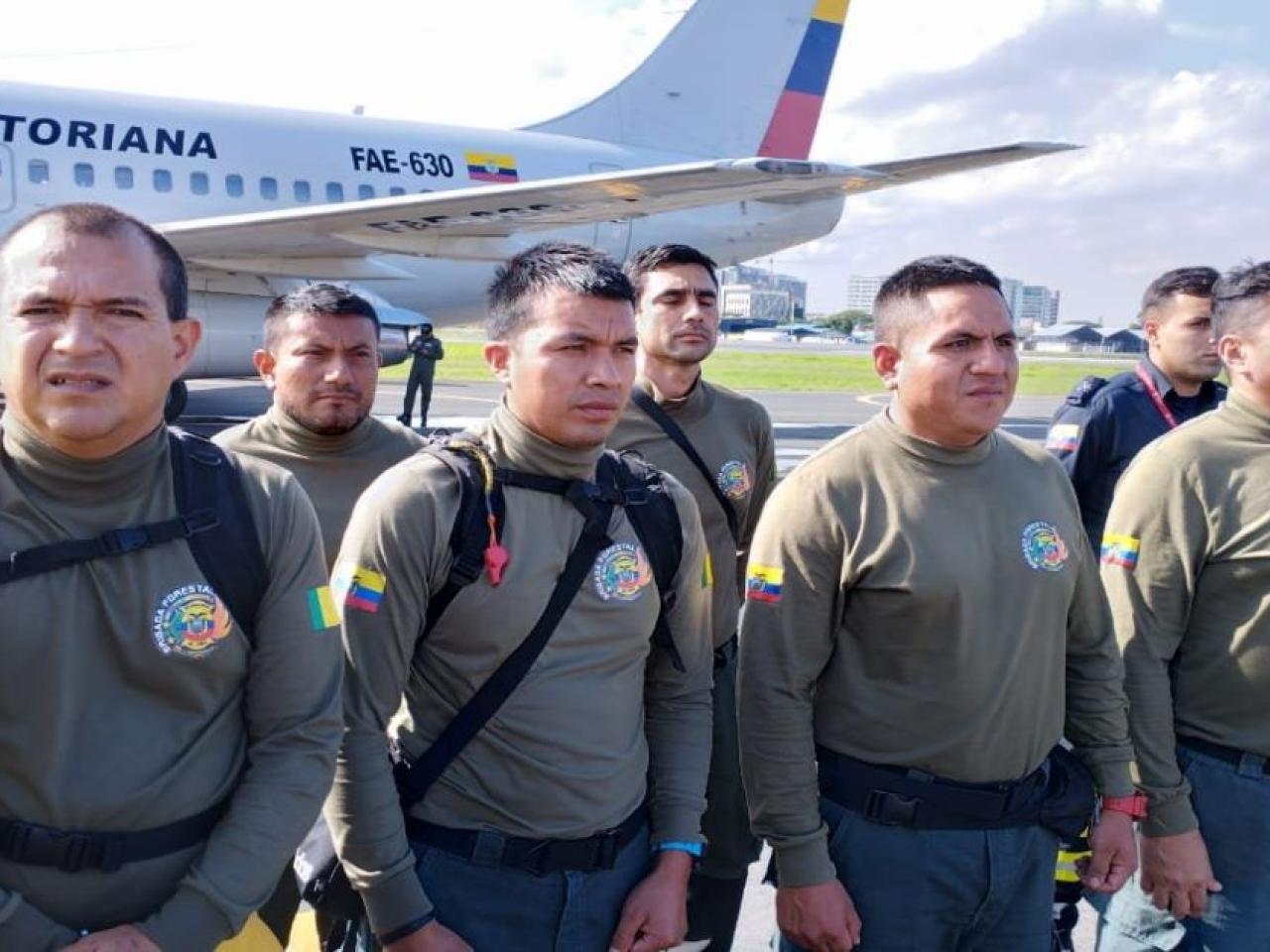 Los bomberos, que integran las Brigadas de Refuerzo en Incendios Forestales (BRIF) de Ecuador, arribaron a la Base Aérea Simón Bolívar de Guayaquil en horas de la tarde.