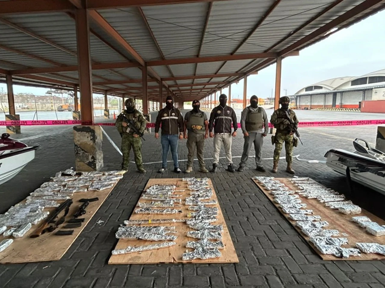 La semana pasada, la Armada ecuatoriana interceptó en aguas nacionales una embarcación que transportaba ilegalmente 122 fusiles de asalto de tres tipos (AK, M4 y R15), 48 pistolas y 124 cargadores.