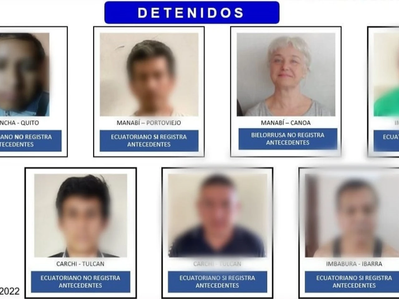 Entre los siete detenidos hay cinco hombres ecuatorianos y una mujer bielorrusa, quien según la Policía de Ecuador sería parte de una red internacional de pedofilia liderada por ciudadanos neerlandeses que fueron detenidos también en Ecuador en junio.