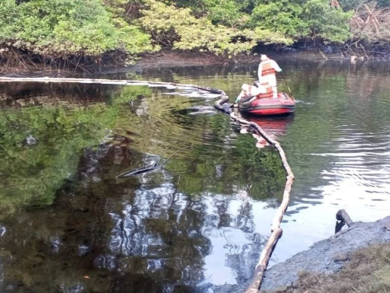 Hasta el lugar también llegó personal de la petrolera estatal Petroecuador para apoyar en los trabajos de contención del hidrocarburo, y de la empresa Interagua, encargada de suministrar el agua potable en Guayaquil y de tomar las muestras del líquido para su análisis.