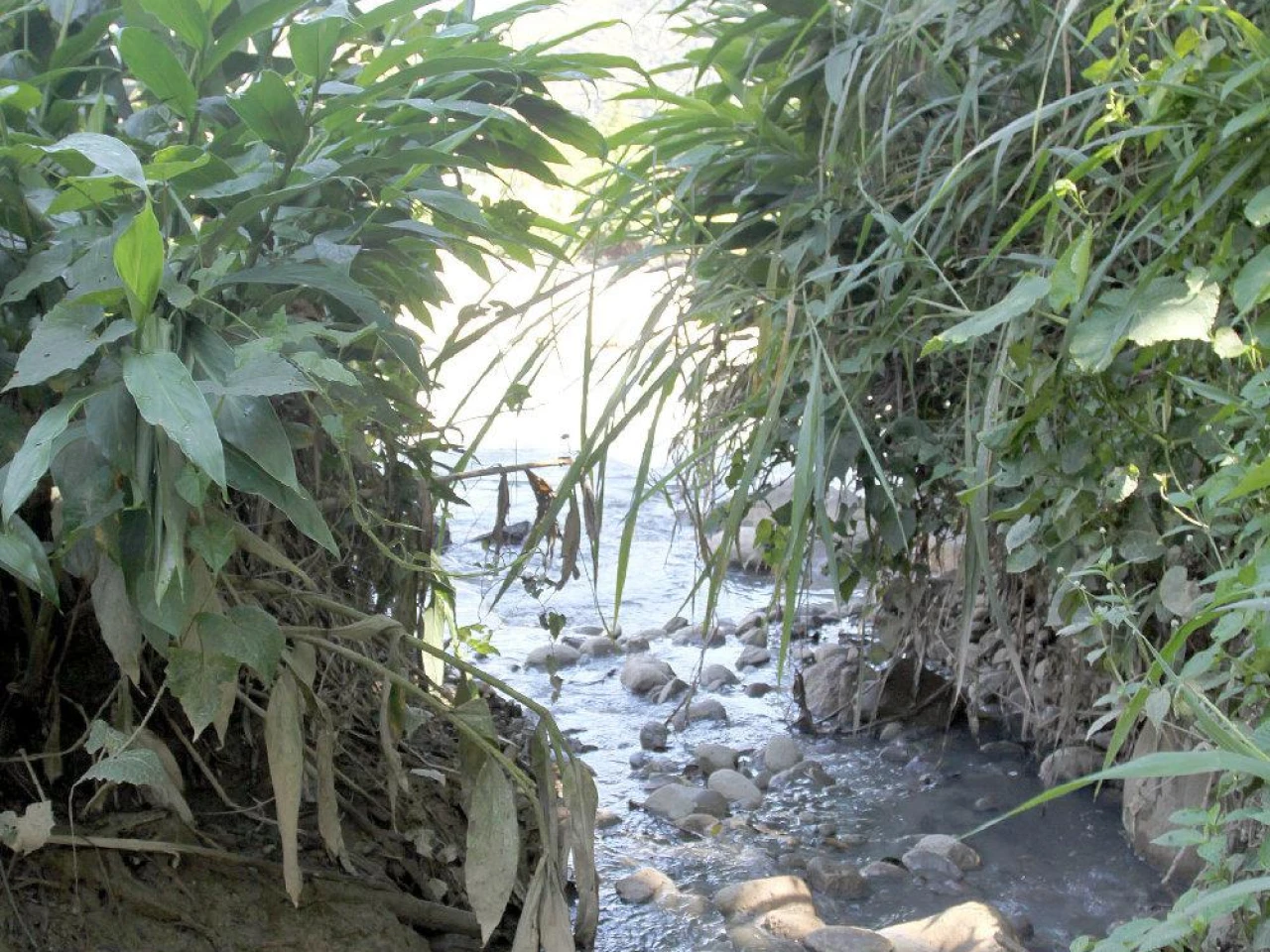 El canal, desde lejos, no es fácil localizarlo, debido a que las plantas que han crecido en sus riberas, lo cubren.