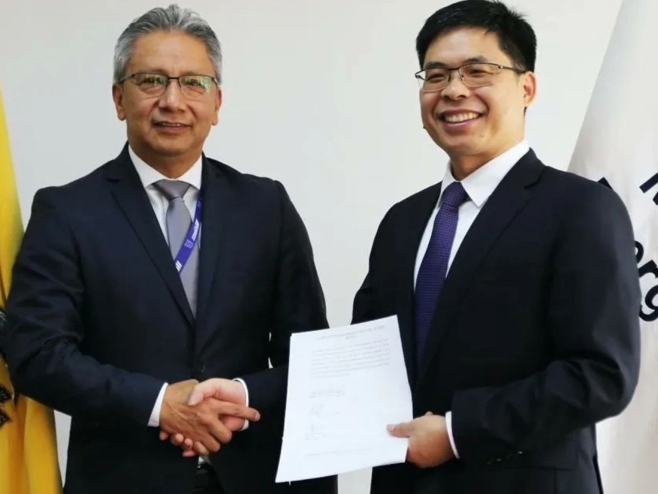 Silvio Torres, viceministro de Hidrocarburos, y Ma Wenjie, representante de Andes Petroleum, en la firma / Foto: cortesía Ministerio de Energía