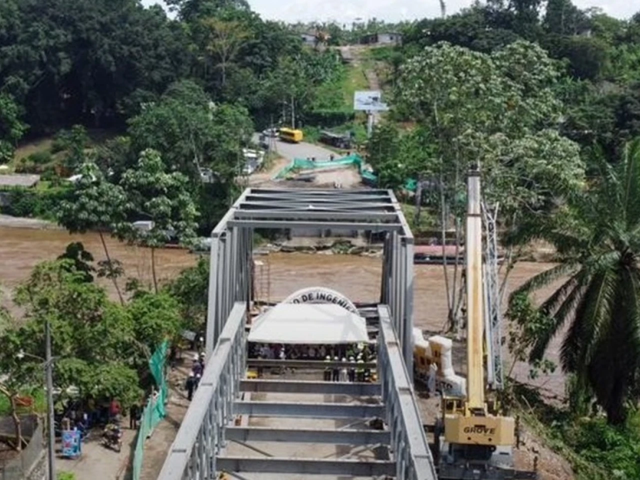Ayer, 22 de noviembre, se comenzó con el lanzamiento de la celosía, que es la estructura que sostendrá el puente. Los técnicos del Cuerpo de Ingenieros del Ejército comenzaron el armado. Será la última fase de la instalación del puente.