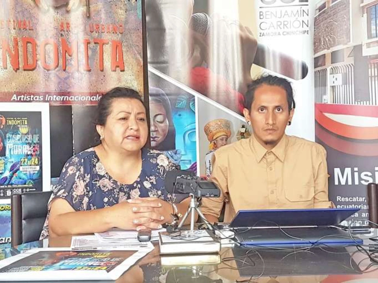CULTURA. La directora provincial de la CCE y el productor de festival Indómita informaron mediante rueda de prensa detalles del evento. Foto: La Hora