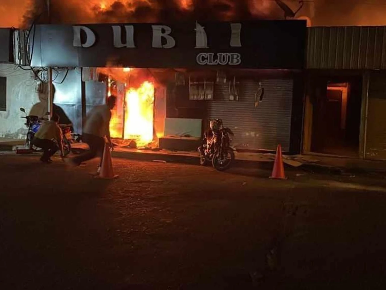 La Policía Nacional indicó que se trató de una explosión y la calificó como ataque terrorista. Según las primeras investigaciones, el incendio fue provocado por personas no identificadas. Además, el fuego se extendió y afectó a 11 locales en total.
