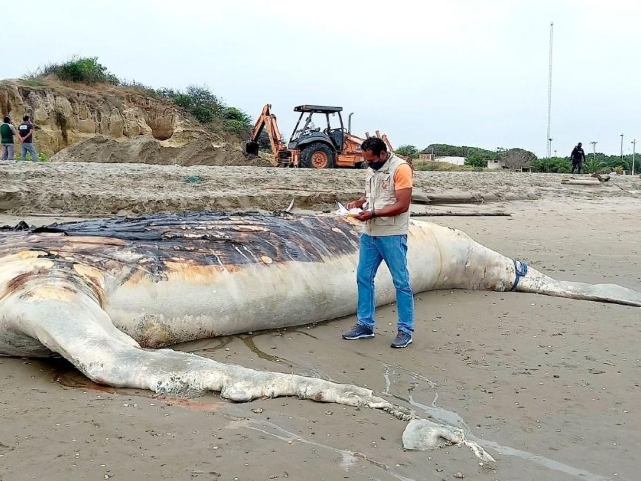 El Ministerio del Ambiente de Ecuador informó este jueves que fue enterrada una ballena jorobada, que se había varado en una playa de la costa del suroeste del país, justo en el inicio de la temporada para el avistamiento de ese tipo de cetáceos frente al perfil costanero americano.
