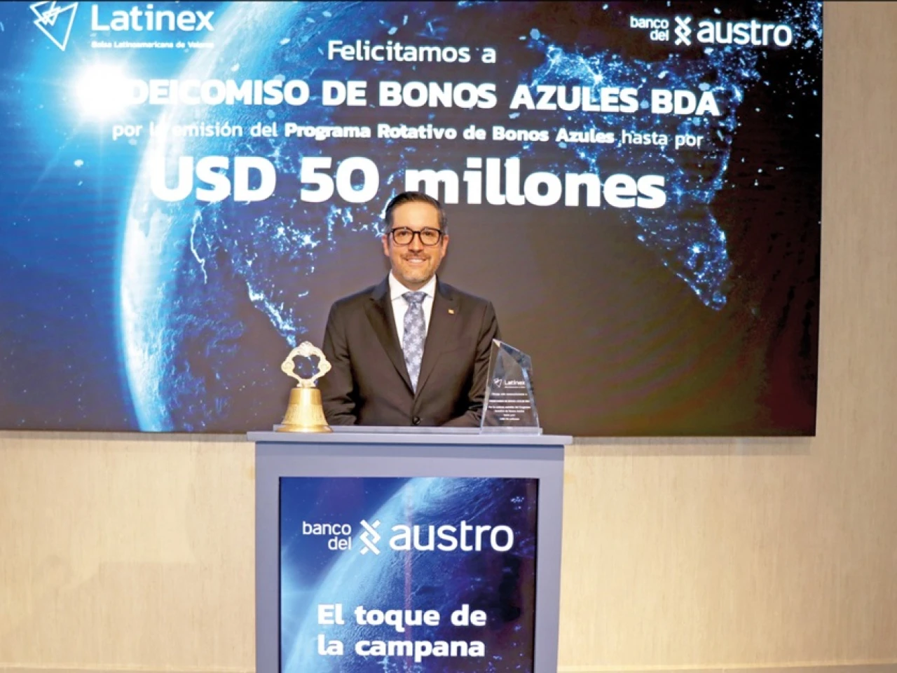 Quito.- El Banco del Austro forma parte de la primera emisión de bonos azules en el mercado de valores de Panamá, una operación que se hará por valor de 50 millones de dólares, según anunció este martes la entidad financiera en un comunicado.