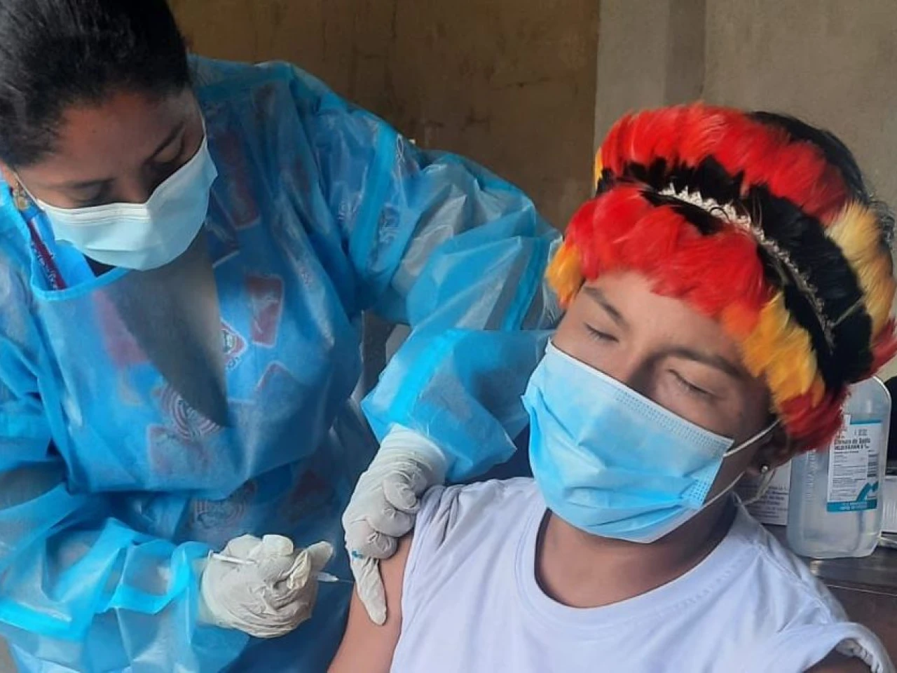 Aij Wajai, de nacionalidad shuar, esperó en su vivienda a la brigada de salud que le aplicó la primera dosis de refuerzo contra Covid-19, luego de haber cumplido 6 meses de la segunda vacuna. “Es muy bueno que el Ministerio de Salud venga hasta acá; nos realicen chequeos y, sobre todo, nos vacunen porque necesitamos para estar saludables”, agregó el líder comunitario de 67 años.