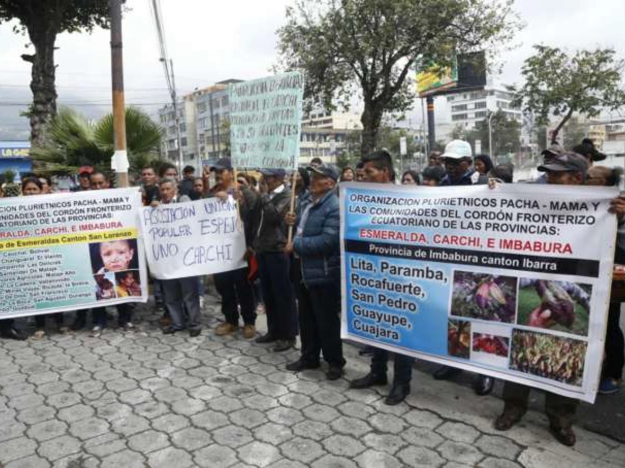 Víctor Guerrero, uno de los dirigentes, adujo que solo en San Lorenzo, Esmeraldas, hay 487 personas con cáncer, lo que atribuyó a la contaminación provocada por el uso del glifosato para erradicar los cultivos de coca al otro lado de la frontera.
