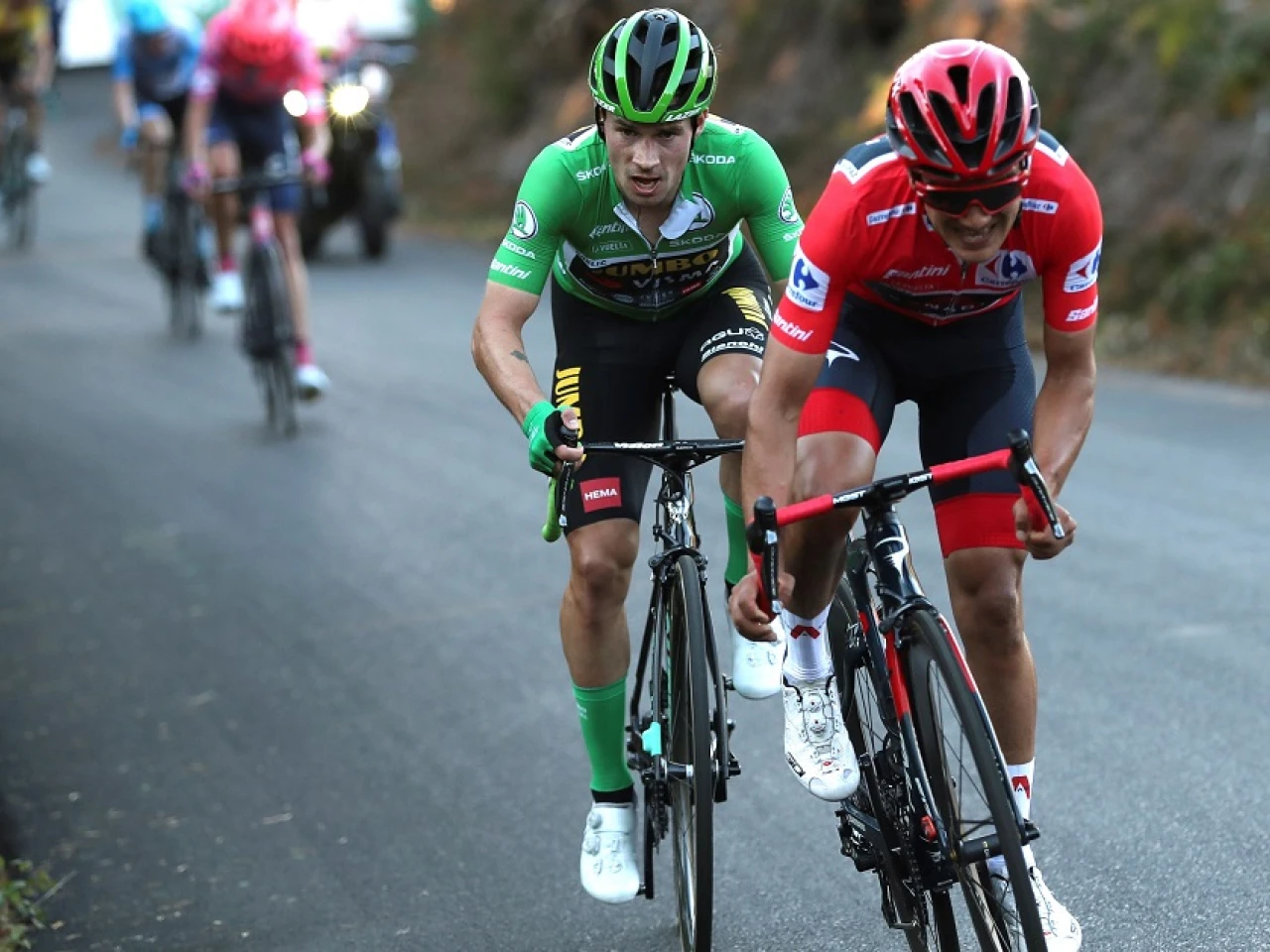 Roglic y Carapaz protagonizaron un precioso duelo en los últimos kilómetros, con ataques entre ellos, demostrando que son los grandes candidatos a la camiseta roja en Madrid.