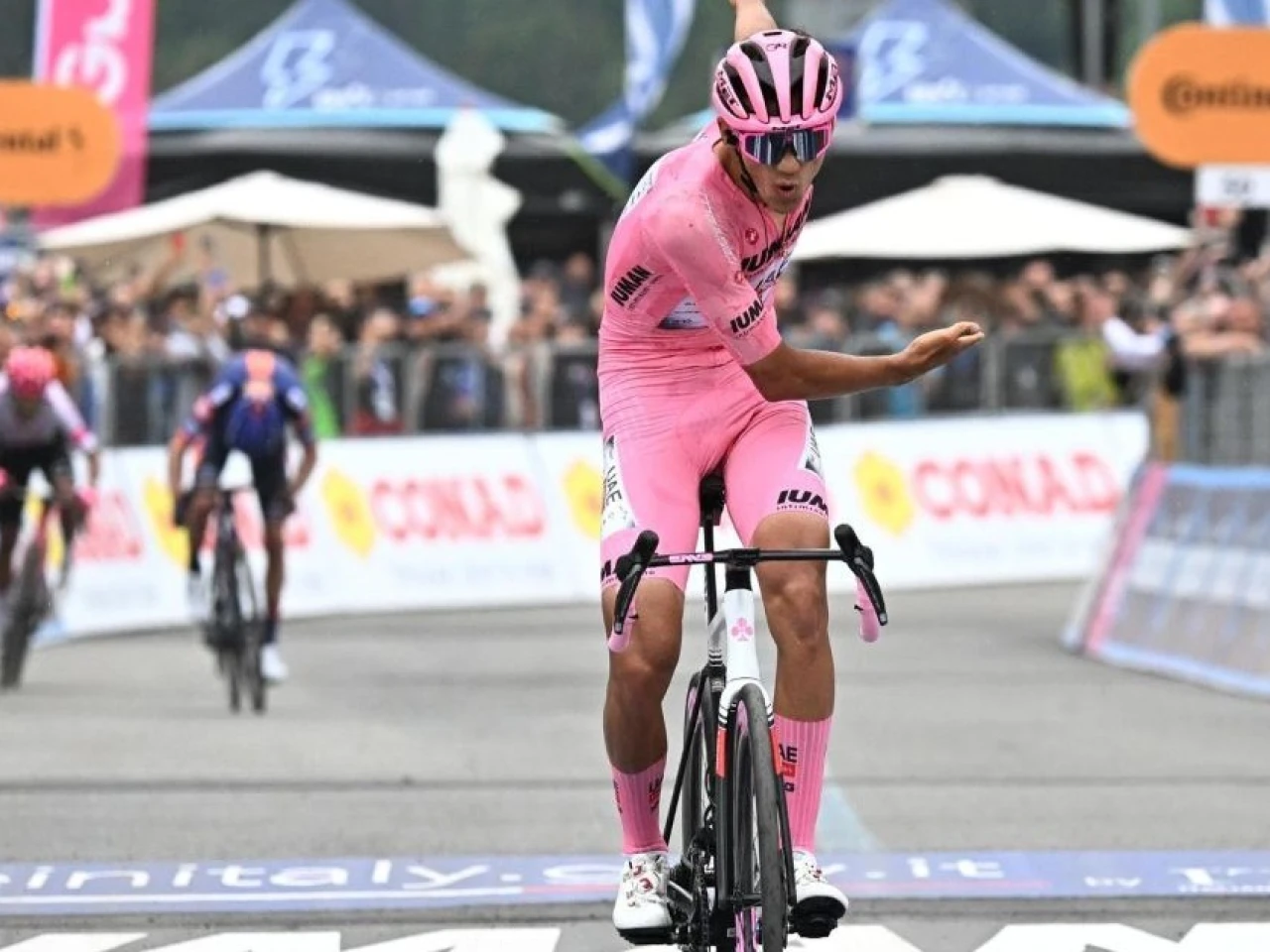Atrapado el francés a 5,5 de meta, ahora un trío se iba a jugar la gloria en Bormio. Parecía que habría entendimiento hasta la recta de meta, pero en el Giro siempre surgen sorpresas. Atacó Del Toro a 1,6 de meta, abrió un puñado de segundos, y hasta meta. Miró atrás, tenía tiempo y espacio para celebrar.