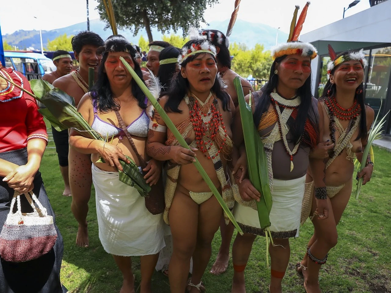 Indigenas waorani participan hoy en el arranque de la caravana por todo el territorio ecuatoriano para pedir el voto por el "Sí" en la consulta nacional del próximo domingo / Foto: EFE