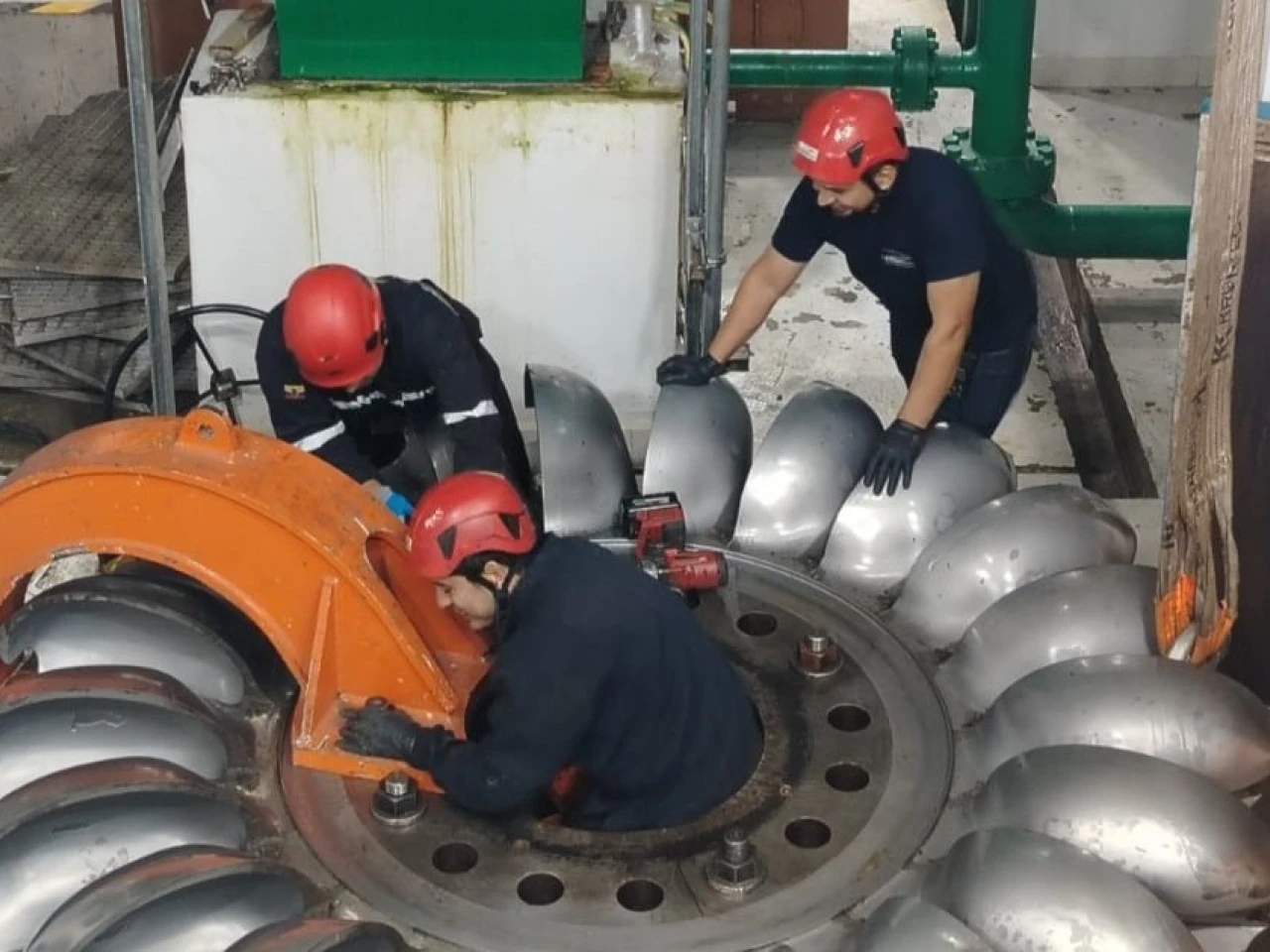 Las labores incluyeron revisiones técnicas en la Unidad de Generación 1, correspondientes a su mantenimiento semestral, así como trabajos en la Unidad 3, donde se efectuó mantenimiento preventivo y el reemplazo de un rodete tipo Pelton, pieza clave para el funcionamiento hidráulico del sistema. Además, se realizaron ajustes en el cojinete de la turbina y verificaciones en distintos equipos auxiliares que respaldan la operación de ambas unidades.