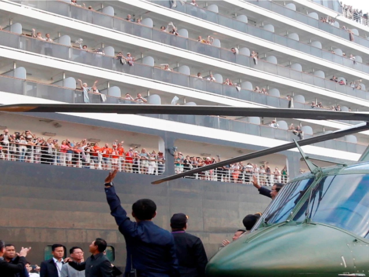 Tras realizar al menos 20 pruebas de coronavirus, todas con resultados negativos, el barco pudo encallar en Camboya. Los turistas, en su mayoría estadounidenses, fueron recibidos por el personal de las distintas embajadas.