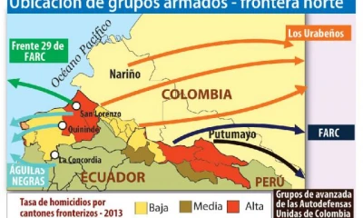 Mientras que, las FARC son miembros vestidos de civil que buscan descanso y abastecimiento en Lago Agrio. Y, las Autodefensas Unidas “controlan el repliegue de la guerrilla y sus líneas de abastecimientos en Putumayo”.