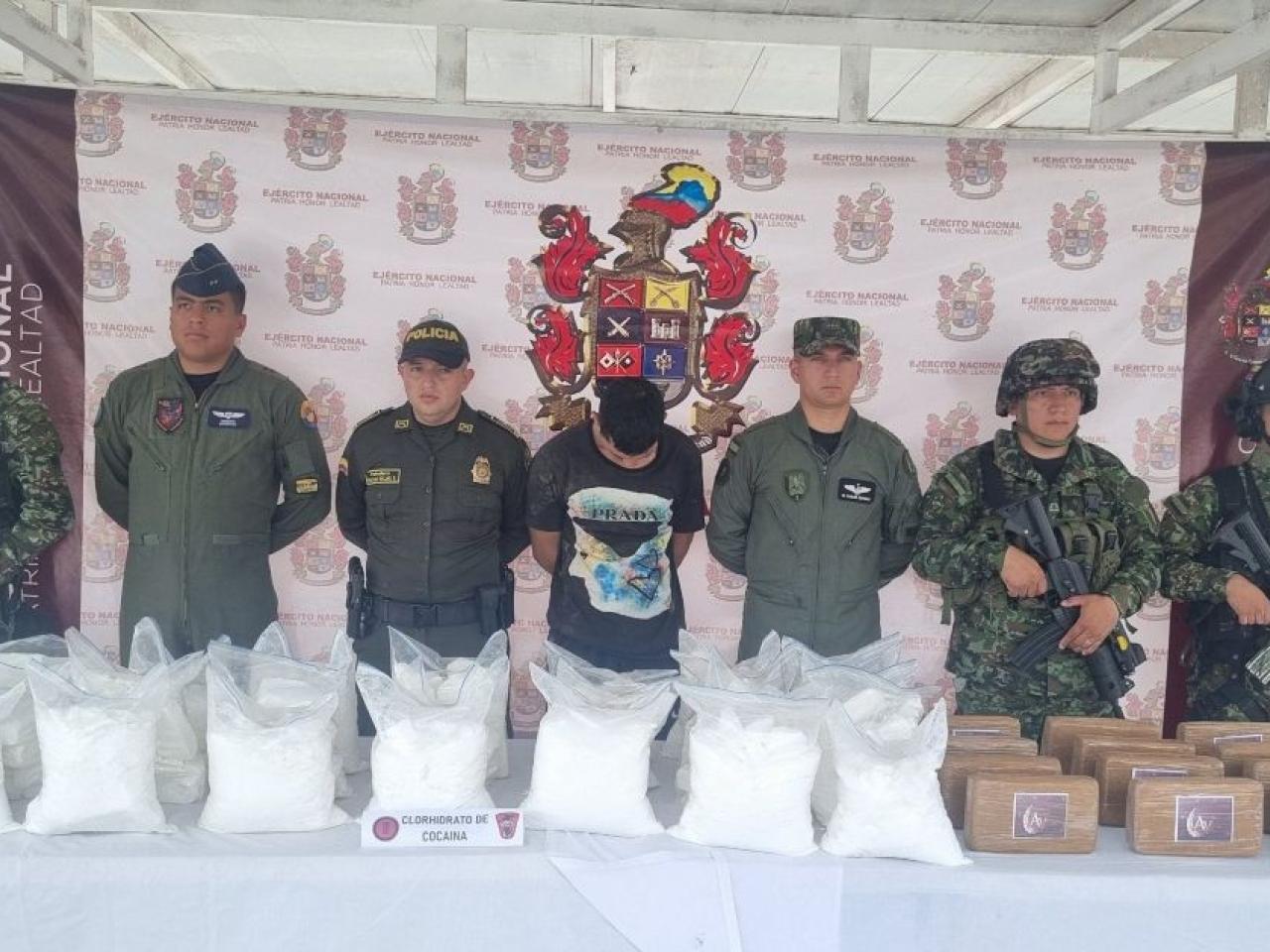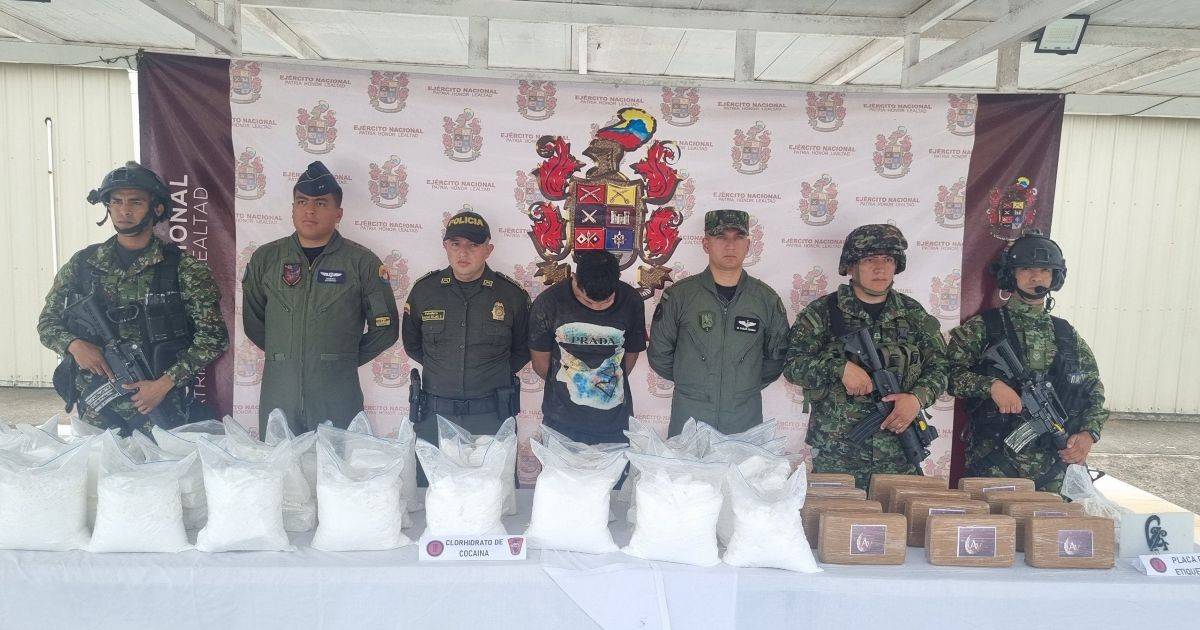 El alto oficial detalló que allí participaron tropas de la Fuerza de Tarea Hércules, la Fuerza Aeroespacial Colombiana, con el apoyo de las Fuerzas Armadas del Ecuador, acción que dejó un capturado, que era el encargado de custodiar el laboratorio para el procesamiento de cocaína.