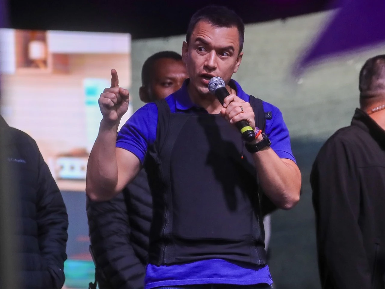 A raíz del asesinato de Villavicencio, Noboa también comenzó a usar chaleco antibalas ya en la primera vuelta, mientras que González se lo puso ya entrada la campaña de la segunda vuelta./ Foto: cortesía EFE
