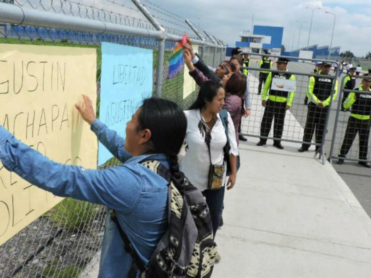 "Agustín Wachapá, preso político", "Indulto y amnistía para los presos y perseguidos políticos" fueron dos de las frases que se plasmaron en los carteles que se usaron este martes en un plantón desarrollado afuera de la cárcel de Latacunga.