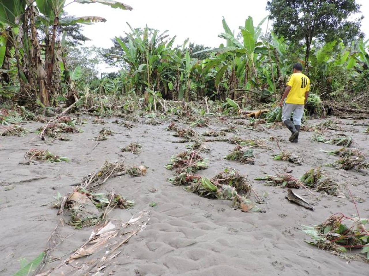 Las aguas ingresaron mucho más de 100 metros de la orilla y fueron arrasando los cultivos de plátano, yuca y cacao.