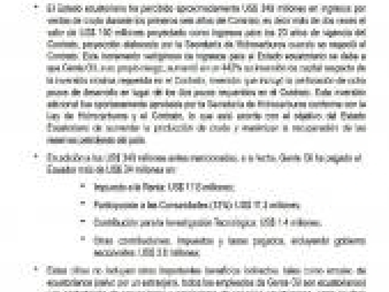 De acuerdo con la empresa privada, la Contraloría General busca recuperar $ 1,05 por cada barril producido ($ 5’234.132,38 en total) de la tarifa pagada. Para la empresa esto no es admisible, pues no se ha considerado que lo pagado a la compañía ni siquiera ha cubierto las inversiones de capital de Gente Oil ni para pagar los costos de operación, impuestos y otros gastos incurridos.