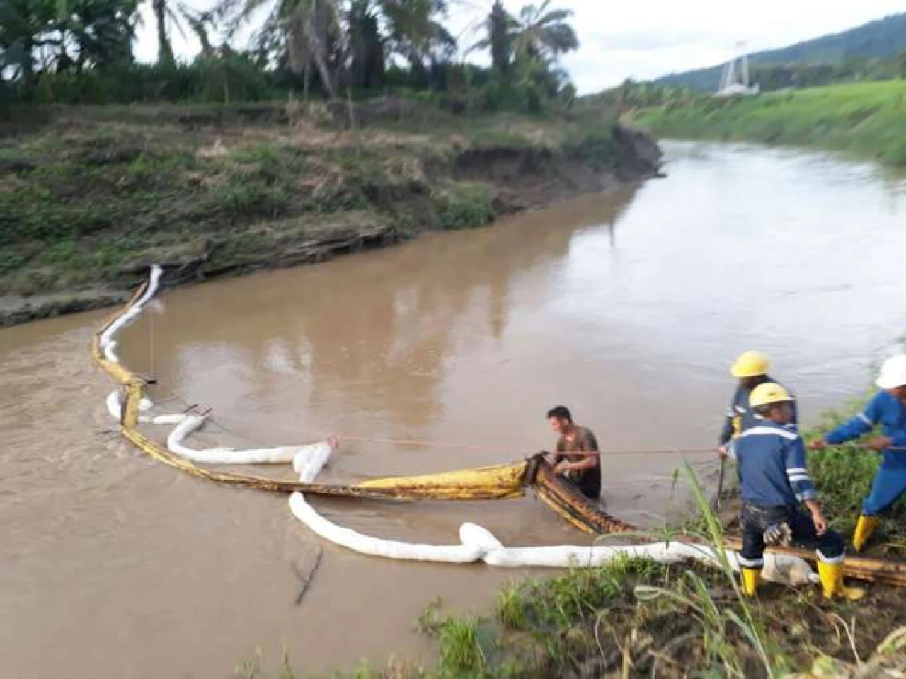 Además, como medida de protección, las autoridades colocaron, junto a la Planta de Captación, barreras absorbentes de contención, para evitar que el químico que viene desde el kilómetro 53, sector El Vergel, de Quinindé, contamine los reservorios.