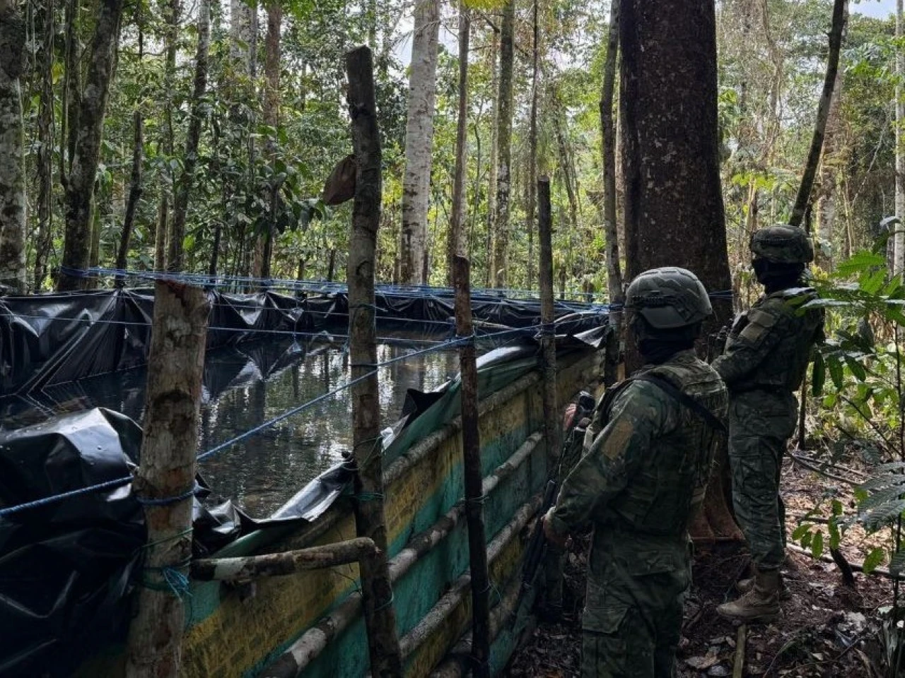 Las fuerzas militares identificaron e inutilizaron dos piscinas artesanales y decomisaron aproximadamente 12.000 galones de gasolina blanca / Foto: cortesía Ejército Ecuatoriano