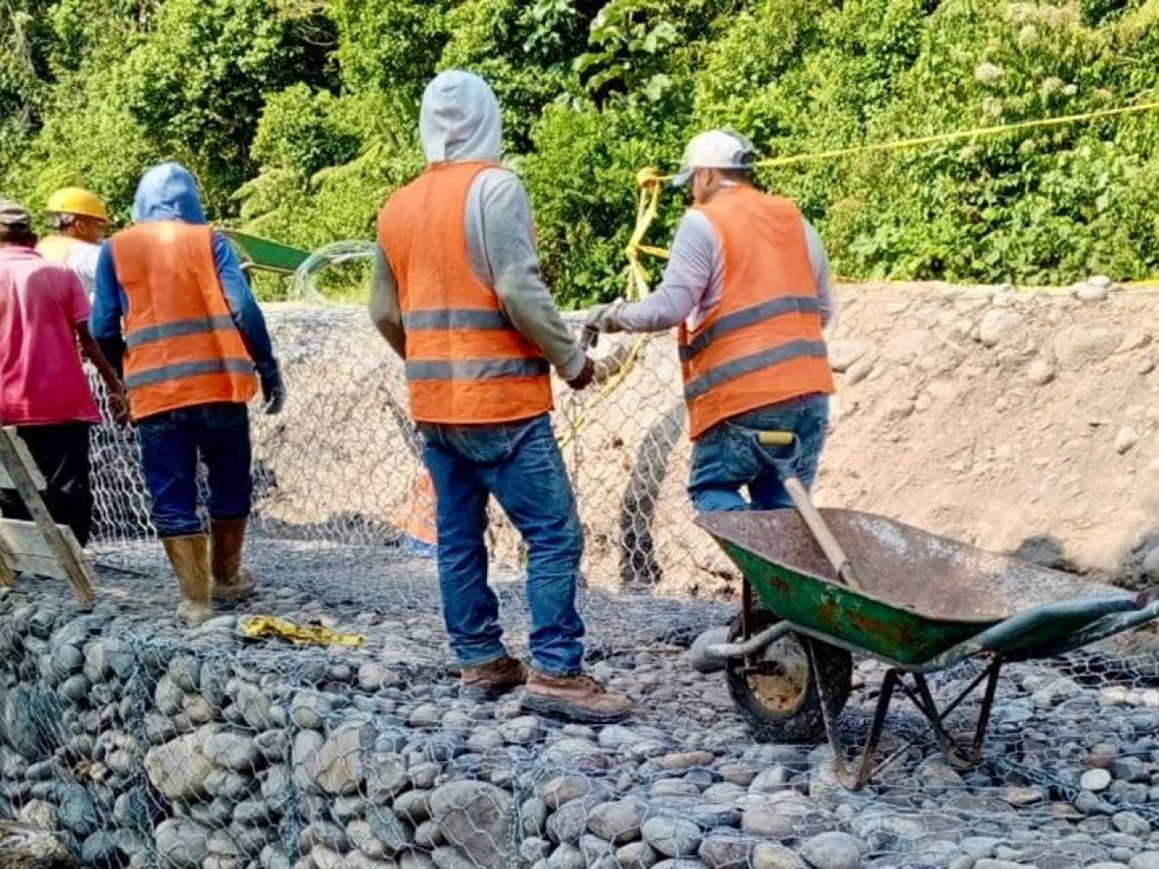 Además, se ejecutan tareas de construcción de muros de gaviones en los sectores de Simón Bolívar, parte de la vía que une las provincias de Pastaza y Morona Santiago, con una longitud de 29 metros y 12 metros cada una, respectivamente. Permite garantizar una transitabilidad segura.