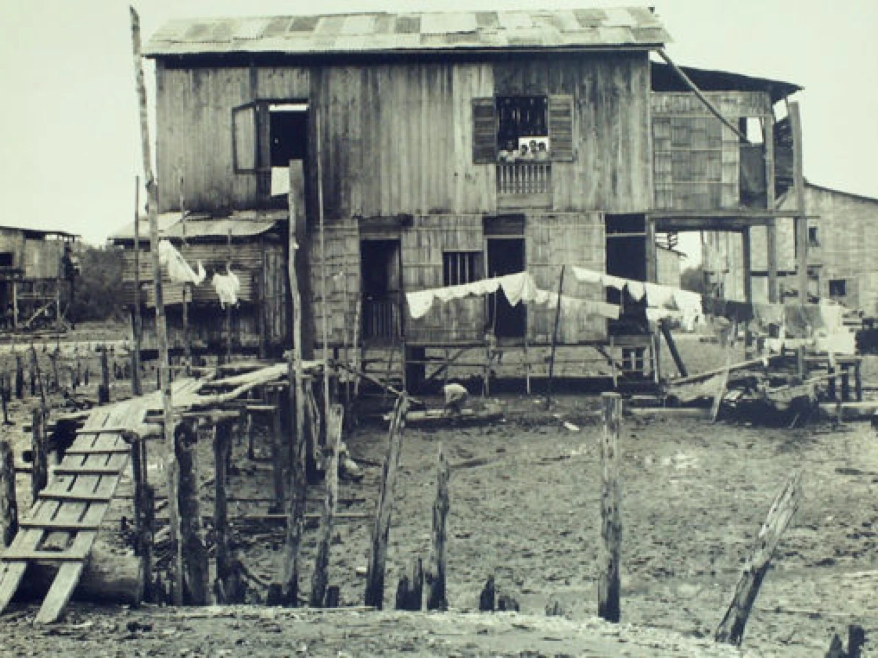 Una casa de caña en la provincia de El Oro después de la invasión peruana: la Dra. Monica Rankin dijo que la foto de los archivos de la Biblioteca Presidencial Franklin D. Roosevelt, no solo muestra la destrucción que dejó la guerra sino que la pobreza y el subdesarrollo siempre fueron un problema en la provincia.