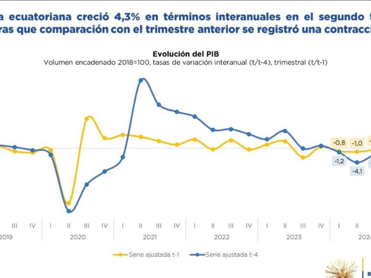 Economía ecuatoriana creció 4,3 % en el segundo trimestre