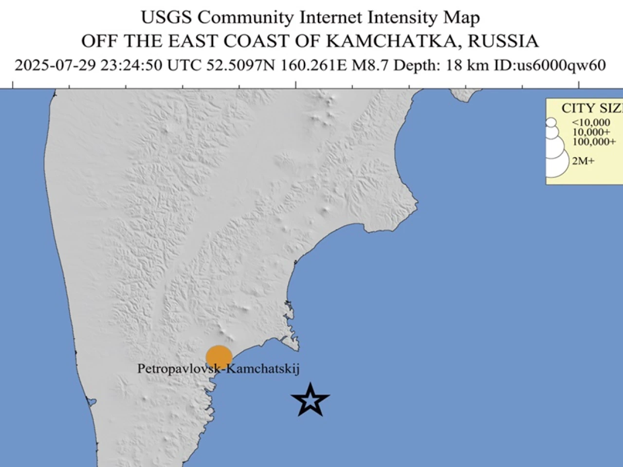 La alerta de tsunami se produce a raíz de un terremoto ocurrido a las 23:25 GMT del martes frente a las costas del sur de la península rusa de Kamchatka, al otro lado del océano Pacífico, con una magnitud inicial de 8, y que posteriormente la Agencia Meteorológica de Japón (JMA) revisó a 8,8. EFE