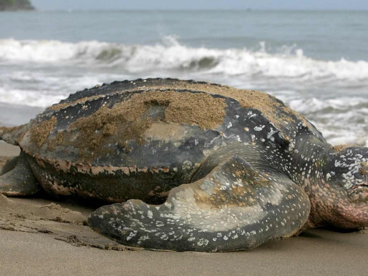 El Ministerio calificó en un comunicado de "histórico" el hallazgo del anidamiento de esta especie de tortuga marina, la más grande del planeta y que puede llegar a pesar hasta una tonelada.