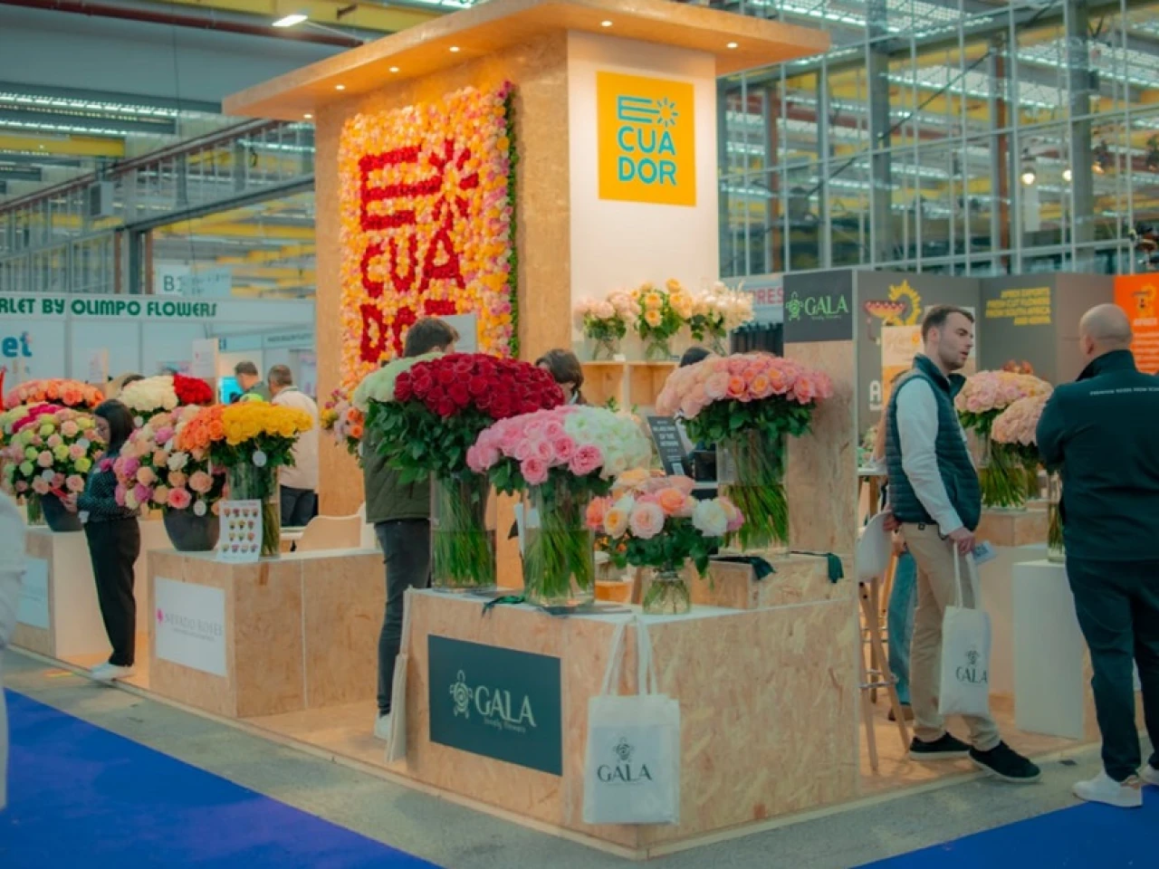 El embajador de Ecuador en Países Bajos, Andrés Terán, inauguró el stand durante primer día de feria. El stand de Ecuador mostró su compromiso con la sostenibilidad. Fue construido con pallets reciclados y materiales naturales, además contó con dos murales de flores donde tuvo presencia la marca país.