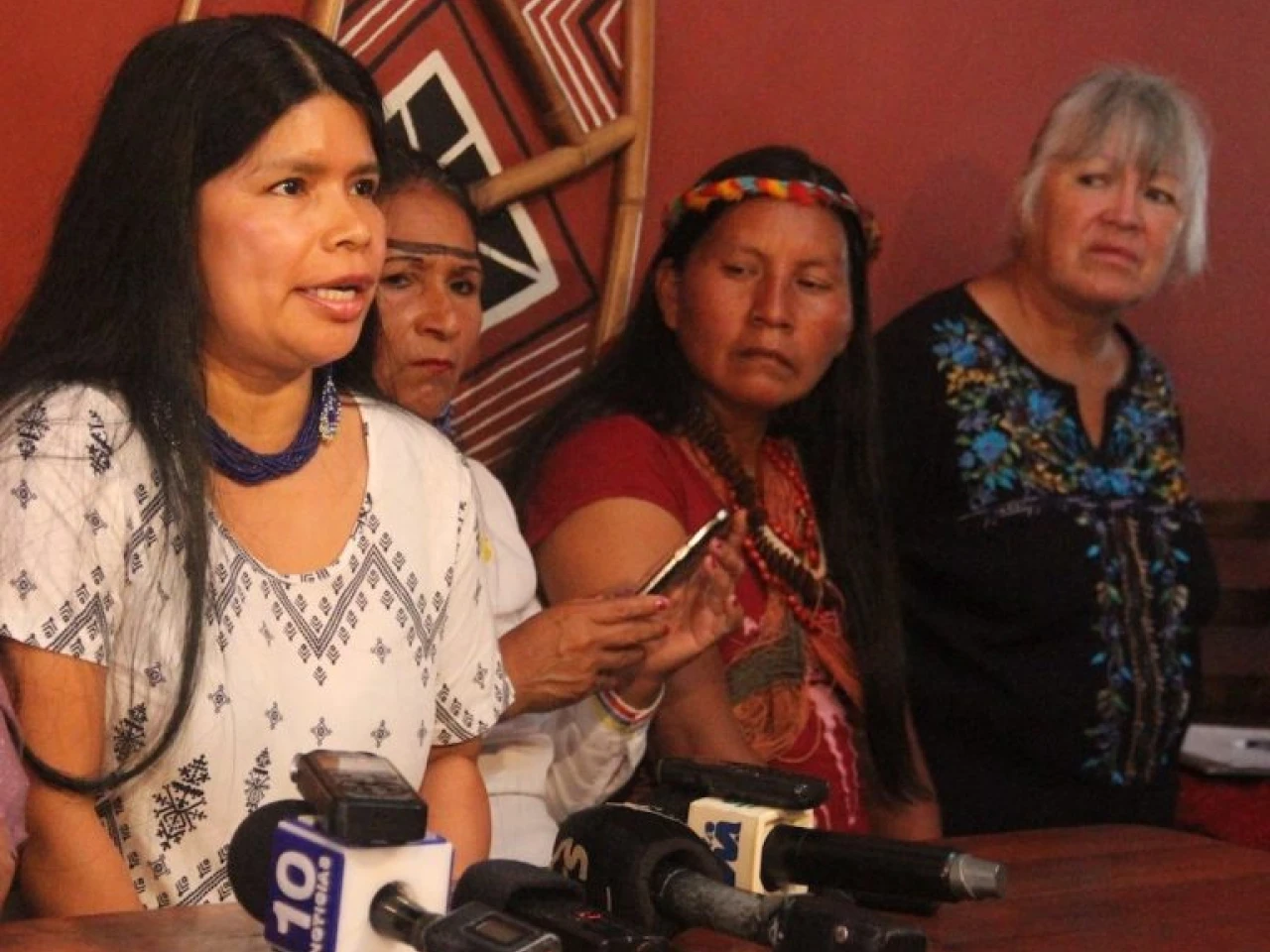 La defensora Sarayaku Patricia Gualinga durante la rueda de prensa donde denunció las amenazas recibidas durante la madrugada del 5 de enero del 2018. Foto: Mongabay