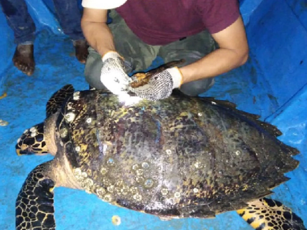 Los funcionarios de Ambiente lograron colocar una placa de monitoreo y seguimiento a la tortuga durante una operación de seguimiento de cara a la próxima temporada de anidación.