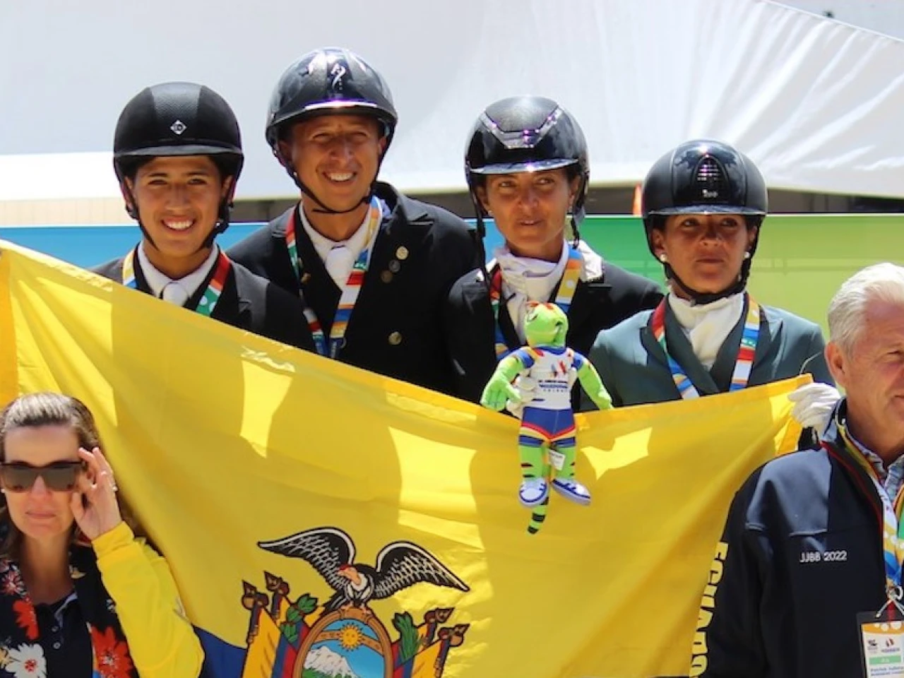 Deportes ecuestres logró la quinta presea de oro para Ecuador. Fue gracias a la actuación del equipo tricolor en adiestramiento mixto, integrado por Carolina Espinoza, Mateo Mendoza, Julio Mendoza y María José Granja.