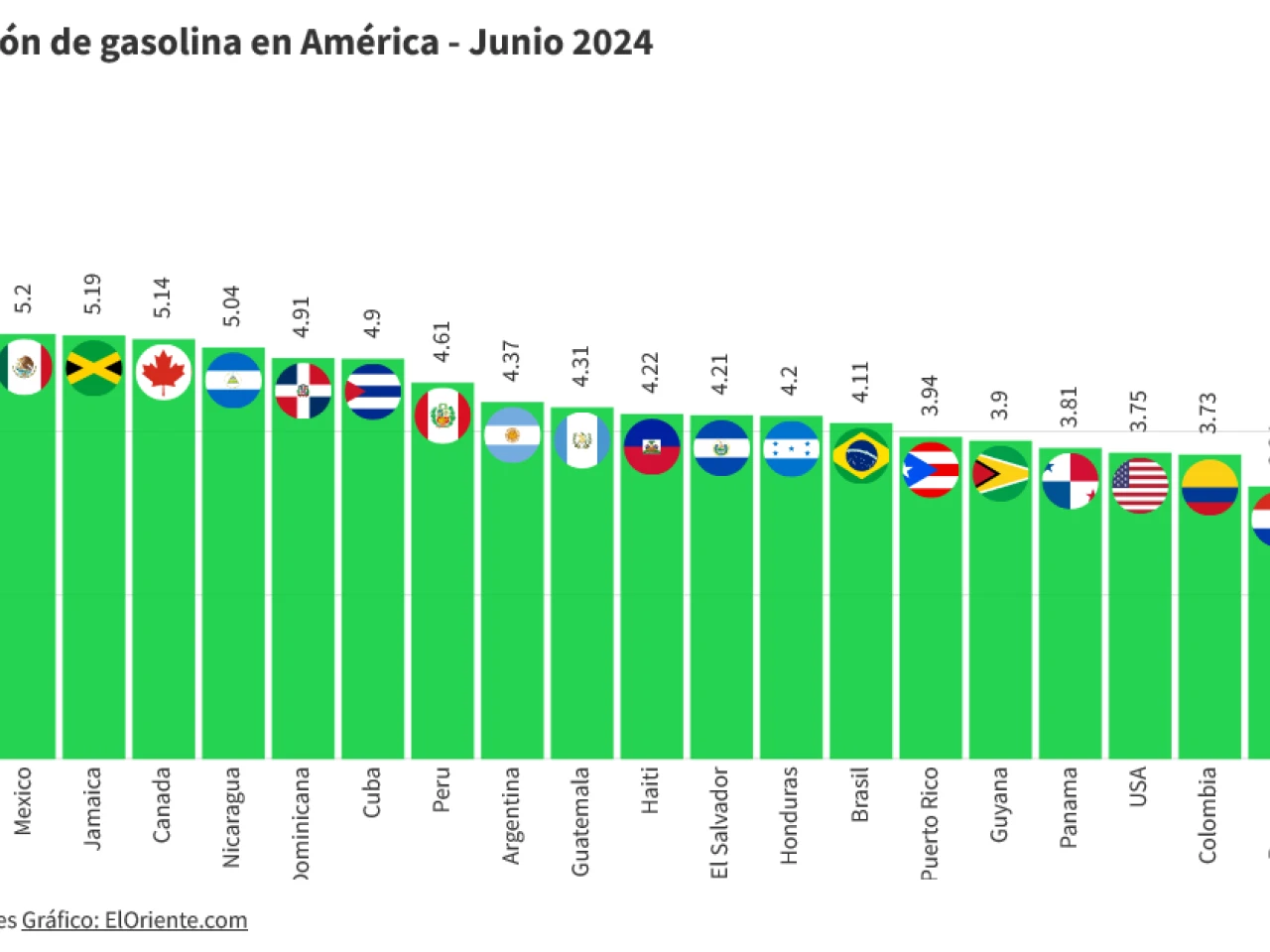 En el tope de la tabla están Uruguay ($ 5.74 por galón) y Chile ($ 5.45 por galón), que, debido a la carga impositiva y a políticas orientadas a la descarbonización, tienen precios por galón de combustible que supera la barrera de los $ 5 el galón.