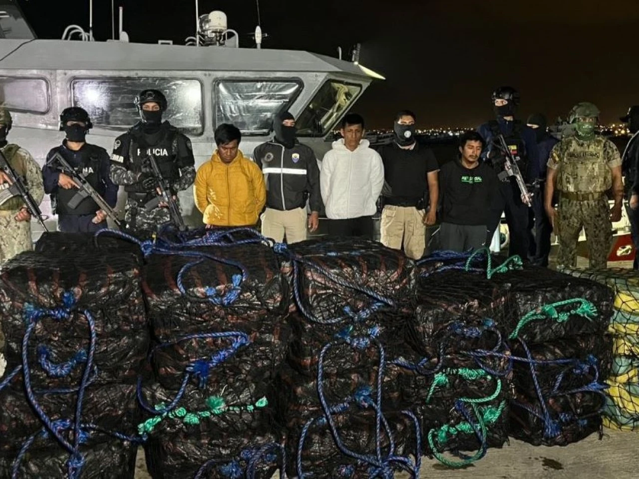 El coronel de la Policía Renán Miller detalló que interceptaron una lancha rápida de bandera ecuatoriana, que transportaba la droga, "presumiblemente destinada al tráfico internacional".