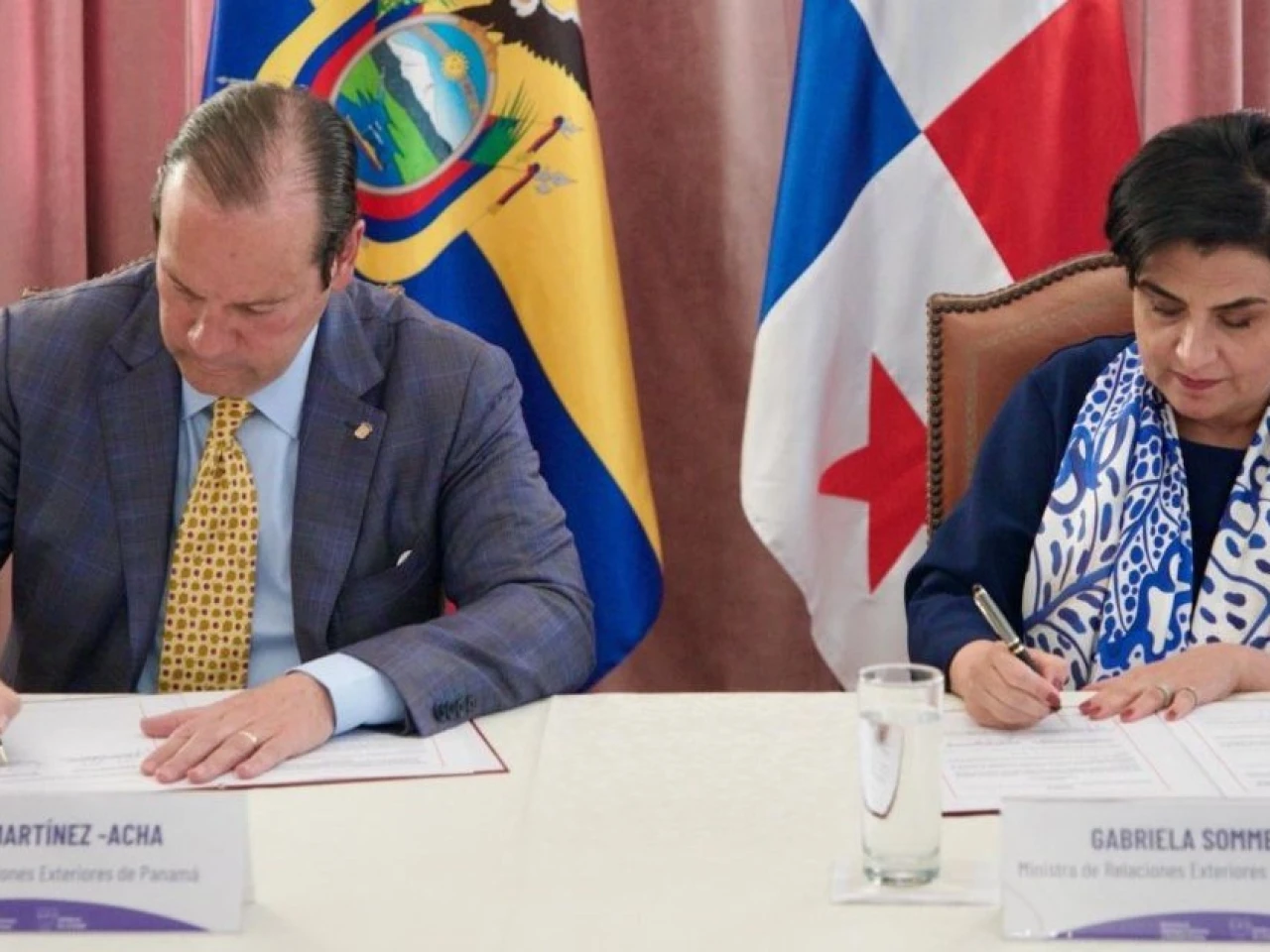 La canciller Gabriela Sommerfeld y su homólogo panameño, Javier Martínez-Acha, se reunieron / cortesía Cancillería