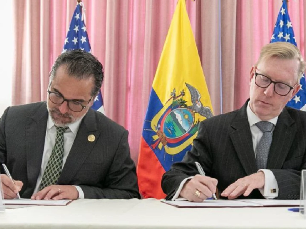 En una ceremonia en el Ministerio de Relaciones Exteriores, Michael J. Fitzpatrick, embajador de los Estados Unidos en Ecuador, y Gustavo Manrique, ministro de Relaciones Exteriores, suscribieron una carta de acuerdo.