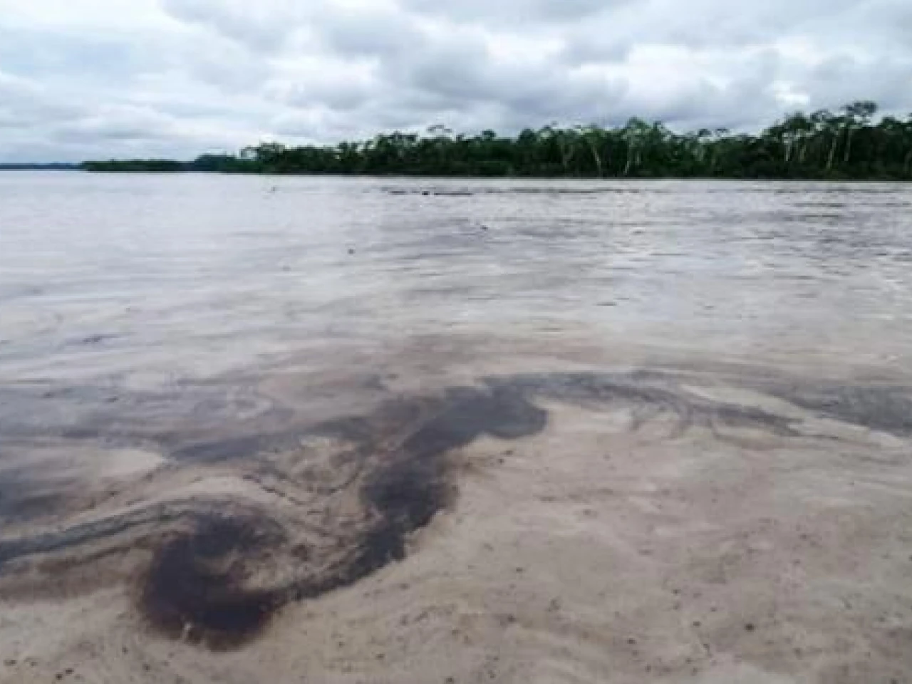 El petróleo se esparció por el río Coca, por lo cual está suspendido el servicio de agua en Francisco de Orellana. Foto: Cortesía