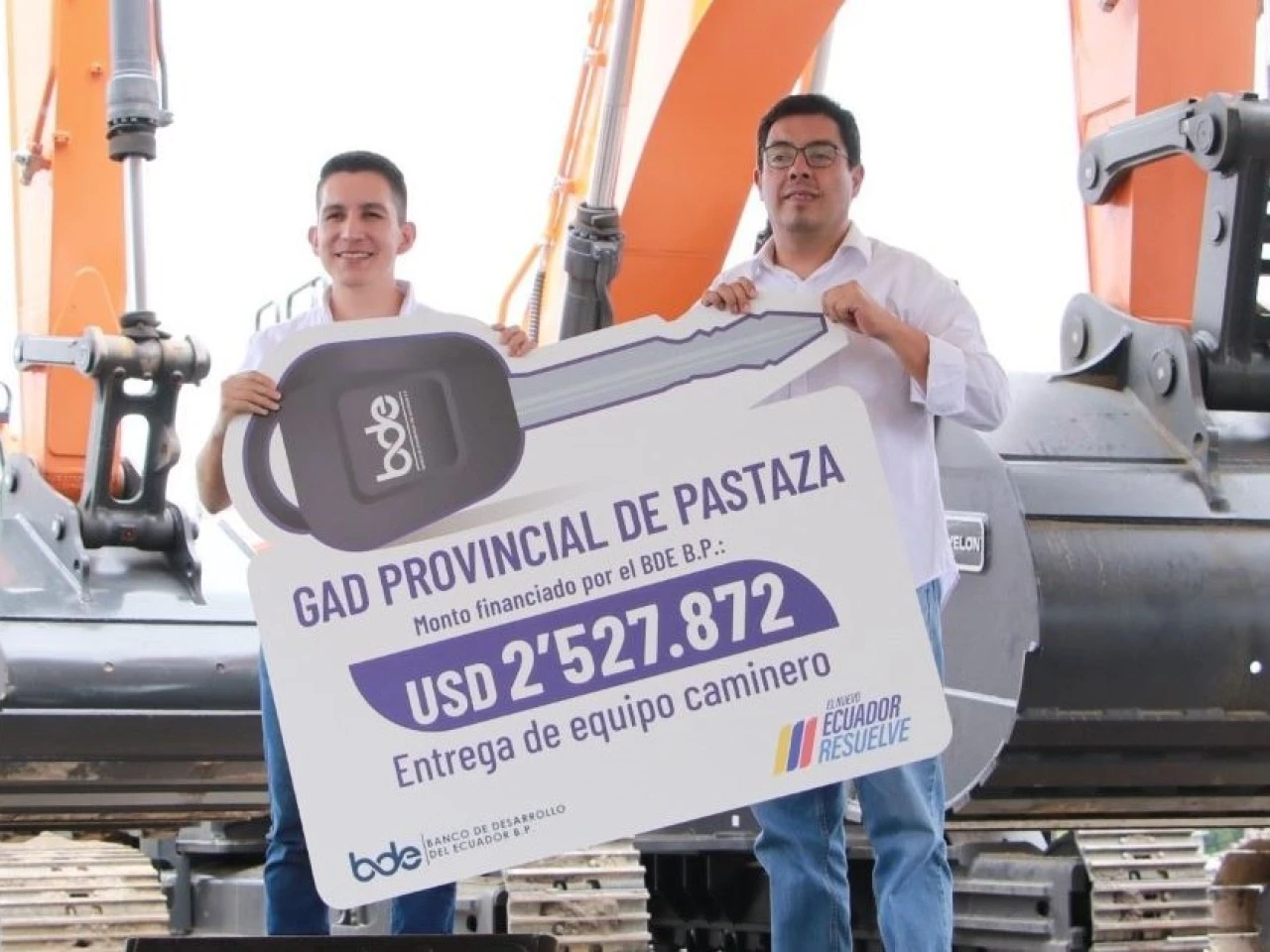 Puyo- El Banco de Desarrollo del Ecuador (BDE) entregó nuevo equipo caminero valorado en $ 2’527.872 a la Prefectura de Pastaza. La entrega fue realizada por el gerente general del BDE, Carlos Rivera, al prefecto André Granda.